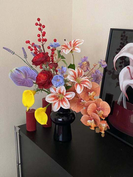 mimiflower新年氛围感手感百合红色家居插花年宵花节日装饰仿真花