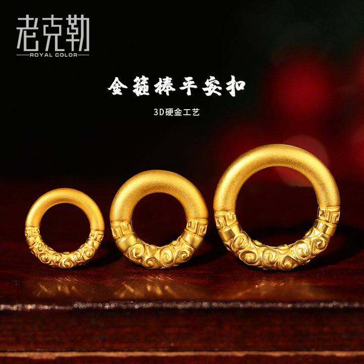 老克勒硬金黄金平安扣吊坠足金如意金箍圈手錬手串项炼项坠男女