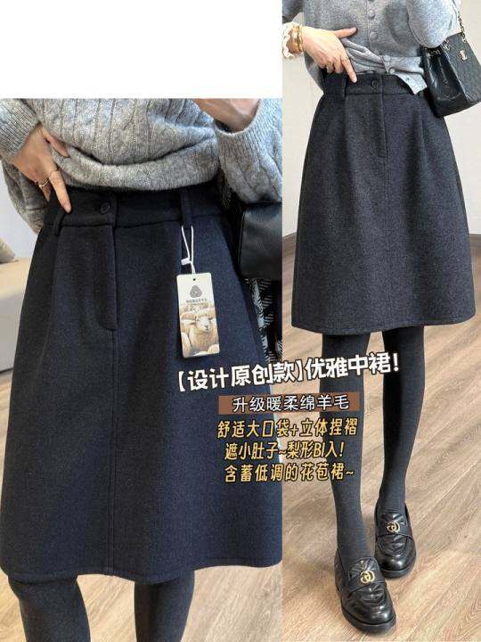靓小靓【原创】藏肉花苞中裙 羊毛半身裙简约通勤短裙秋冬毛呢裙