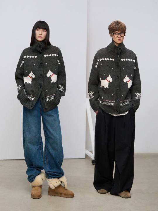 CLIMAX VISION羊毛混纺西高地狗狗费尔岛保暖针织开衫毛衣外套