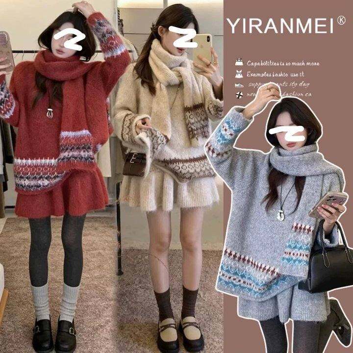 12.28文文【濮院毛衣】511费尔岛上衣半裙披肩三件套非质量不退换