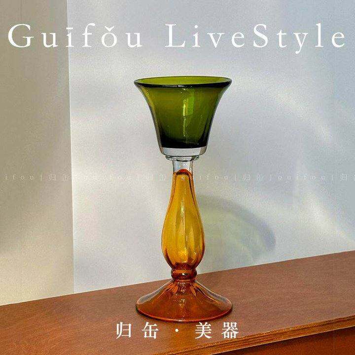 归缶中古风小众高级设计感蜡烛台民宿烛光晚餐客厅氛围琉璃摆件