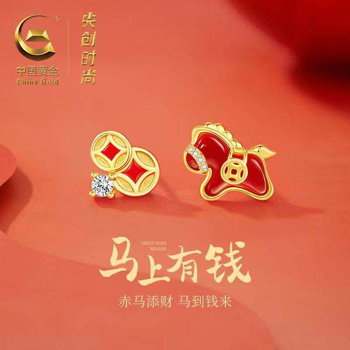 中国黄金央创马年本命年耳钉纯银红玛瑙耳饰女生日礼物送女友S925