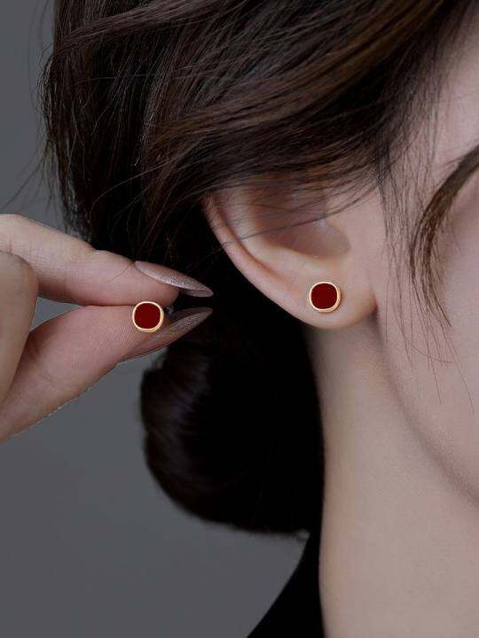 S999纯银针养耳洞红色耳钉女精致高级感耳环2025新款爆款百搭耳饰