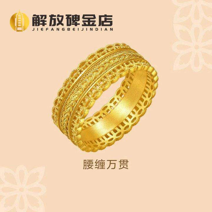 古法黄金腰缠万贯戒指男女款宽版镂空钱币暴富足金999戒指送女友
