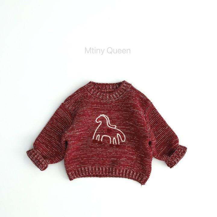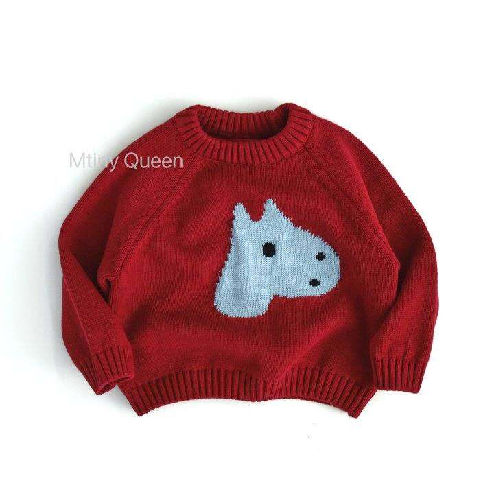 Mtinyqueen~2025年儿童秋冬新款纯棉卡通正红色小马男女宝宝毛衣