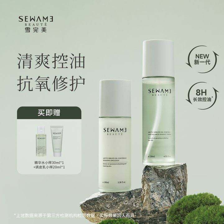 雪完美极地云杉控油水乳套装敏感肌油皮混油皮补水舒缓修护祛痘膏