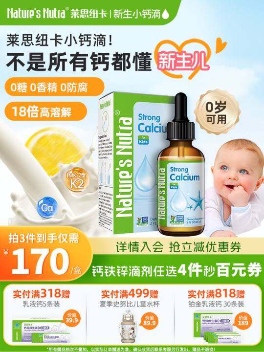 莱思纽卡婴幼儿童宝宝补钙铁锌婴儿液体小钙滴剂补充剂专用新生儿