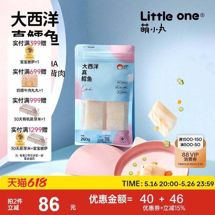 萌小丸大西洋深海真鳕鱼新鲜冷冻鳕鱼块260g宝宝婴儿童辅食食材