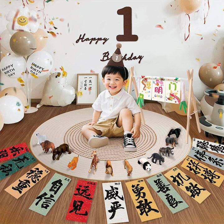 宝宝抓周道具一周岁生日布置装饰品用品动物品德字条幅拍照卡片