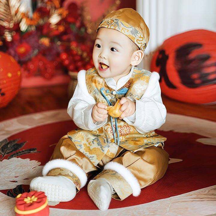 周岁男宝礼服中式秋冬百天生日男婴儿唐装国风套装抓周服汉服衣服