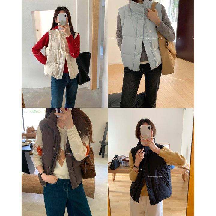Ahui 冬季新款90白鸭绒面包羽绒服宽松立领无袖百搭羽绒马甲女