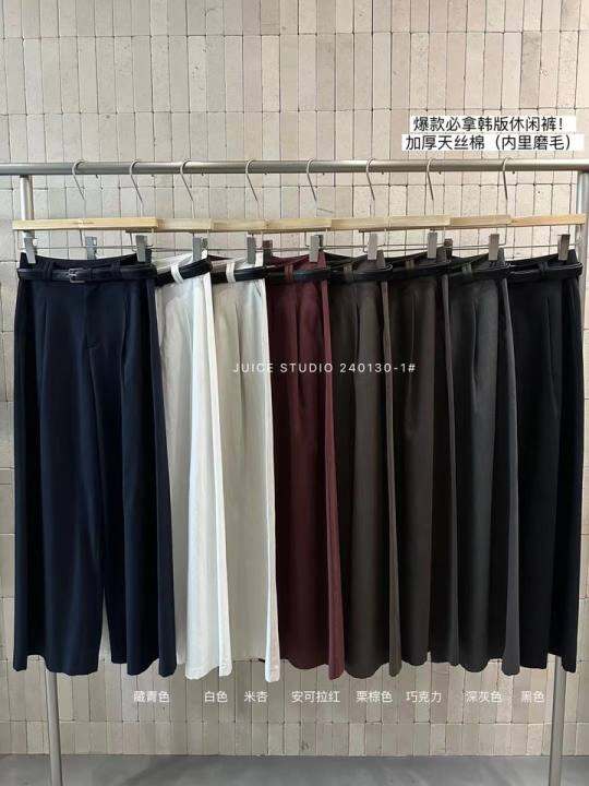 JUICE240130-1天丝棉高腰阔腿裤休闲裤女秋季百搭显瘦直筒长裤女