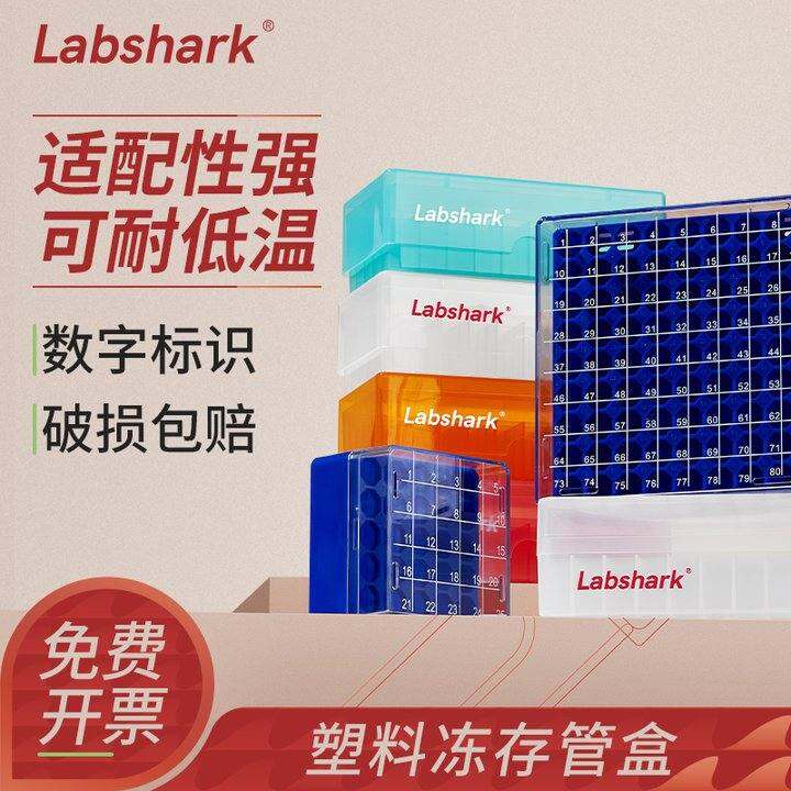 Labshark塑料pp冻存盒pc81格冻存管盒冷冻盒50格100格实验室样品管盒防水型可放液氮环境赛默飞冻存收纳盒