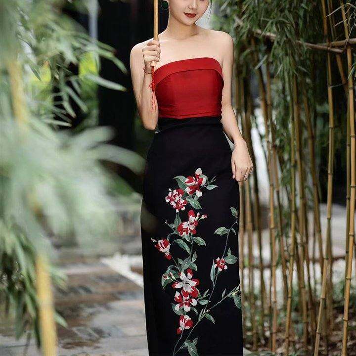 小丽天使爱美丽 眉黛朱砂新中式国风吊带包臀连衣裙秋内搭高级感