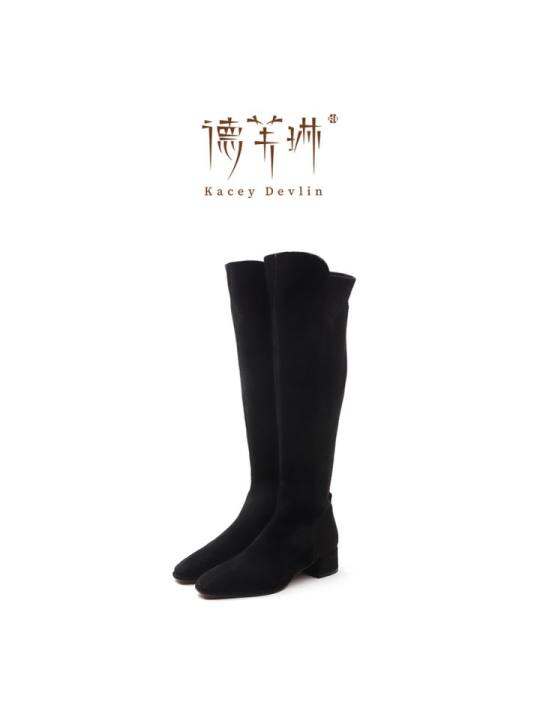 德芙琳鹿皮弹力烟筒瘦瘦靴及膝长靴显高英伦高筒靴靴羊反绒靴子女