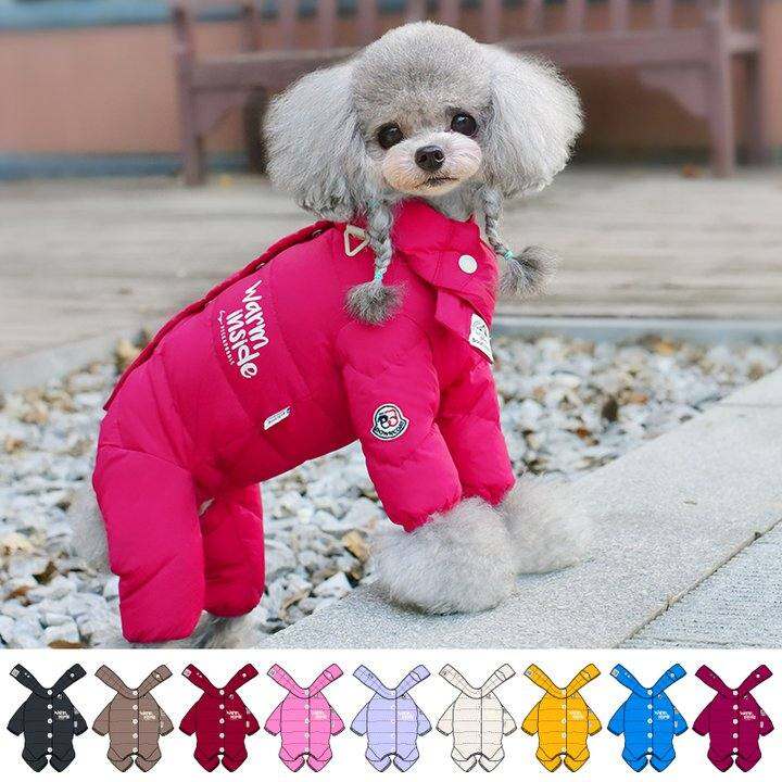 【新款】一阅心田围巾羽绒服连身四脚包肚子狗狗衣服冬天保暖冬季