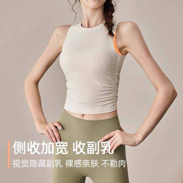 瑜伽女夏季跑步健身运动上衣工字型褶皱修身显瘦速干普拉提背心