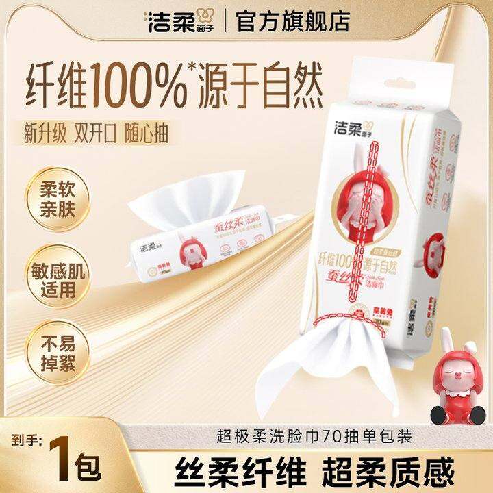 洁柔面子洗脸巾超极柔洁面巾一次性可悬挂抽取式70抽干湿两用柔巾