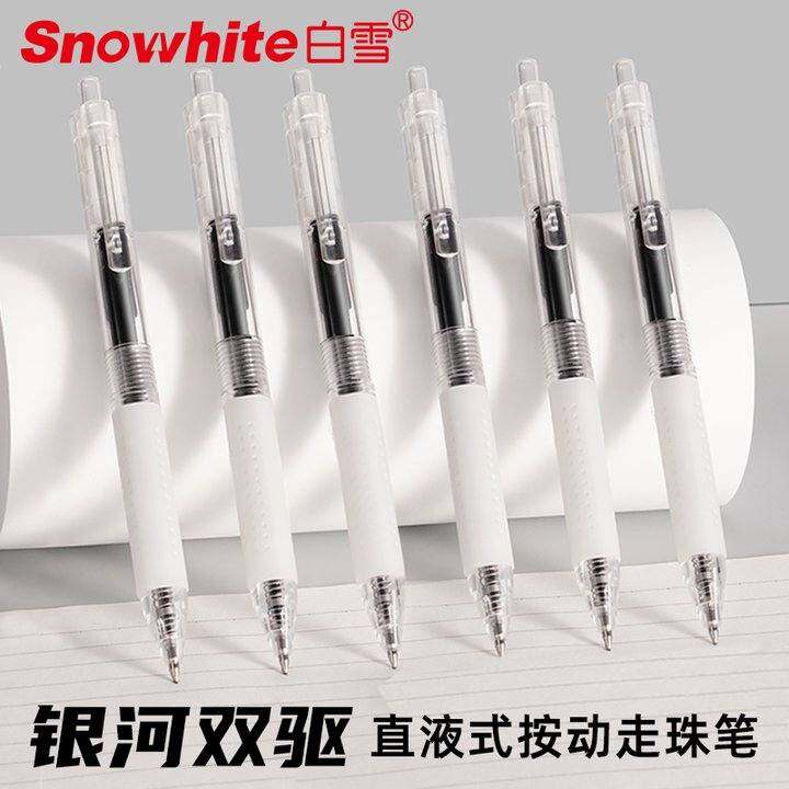 一直用的白雪走珠笔。这次换了按动这款,也很好用,出墨很流利,速干还是大容量。也可以买这款笔芯替换用。