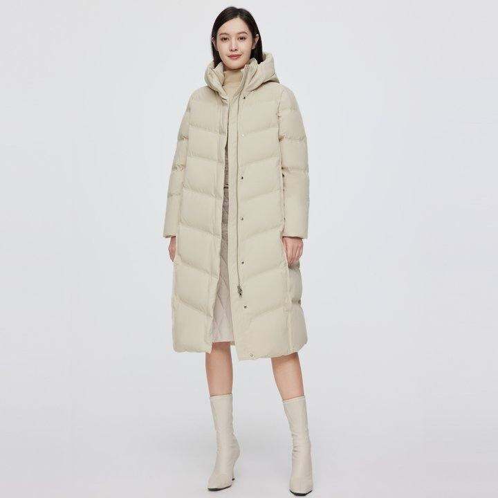 波司登新款女士长款连帽设计双重门襟防风保暖时尚百搭羽绒服外套