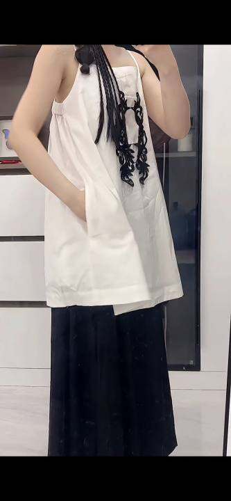 直接买的一套,白吊带黑裙子。我现在怀孕五个月依然能穿,很能遮挡孕肚😂😂😂😂