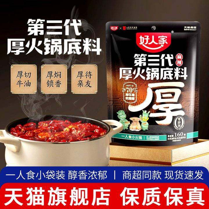 好人家牛油火锅底料160g第三代厚四川麻辣老火锅底料小包装一人份