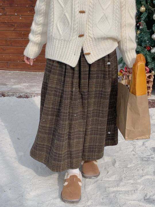 已加厚~日系覆古格子毛呢半身裙冬季中长款百褶裙高腰显瘦学院风