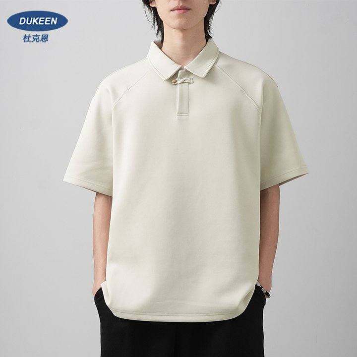 新中式国风盘扣polo衫短袖男夏季高级感插肩袖260G重磅翻领t恤男