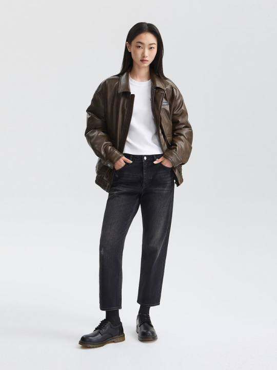 【张凌赫代言】Lee25冬新舒适直筒五袋款磨毛黑灰色女保暖牛仔裤