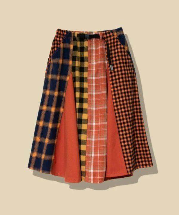 2025夏季新款 出口日本原单格纹配色拼接半身长裙