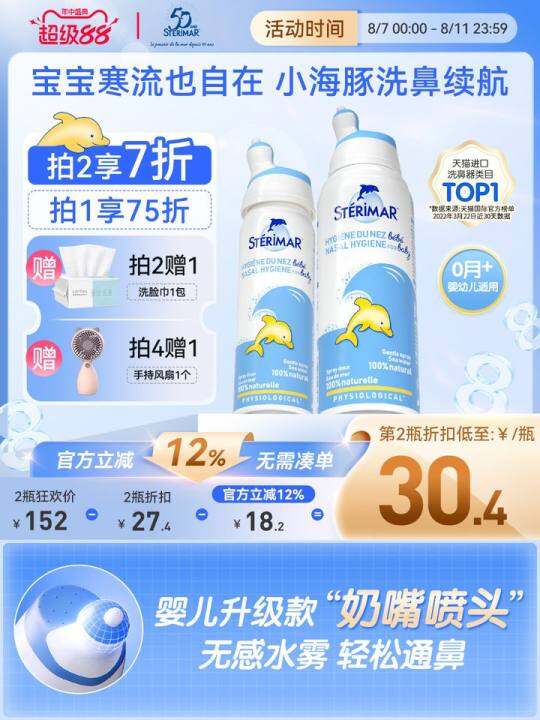 舒德尔玛洗鼻盐小海豚婴幼儿天然生理海盐水儿童清洁鼻腔喷雾剂