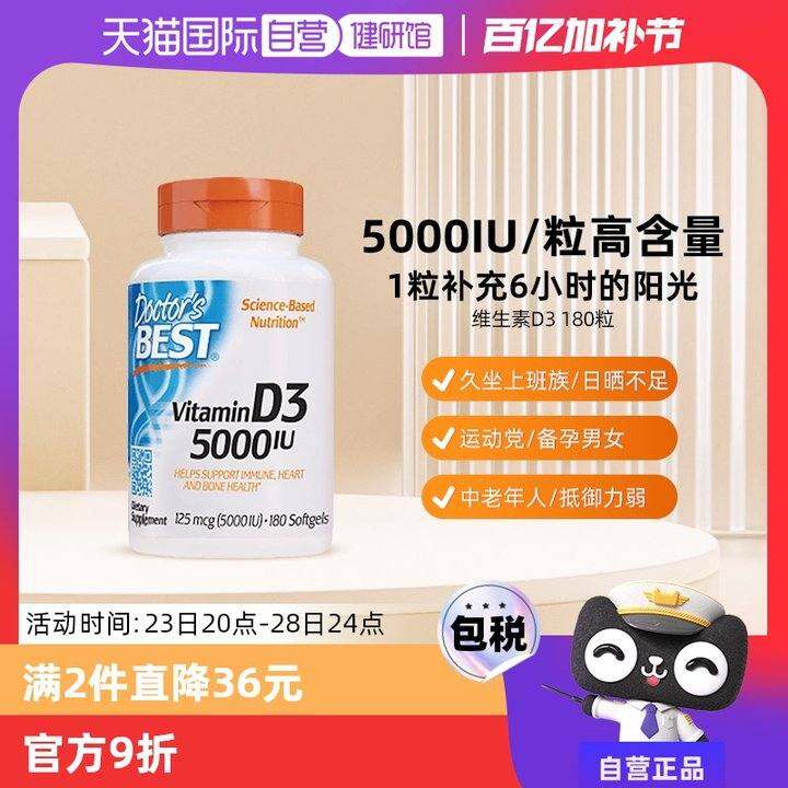 【自营】金达威美国进口多特倍斯维生素D3软胶囊5000IU180粒补钙