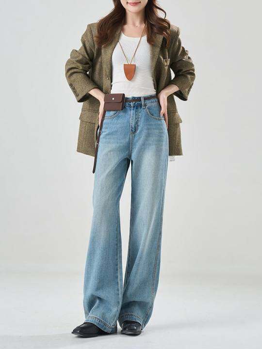 【呼呼严选专享】窄版阔腿牛仔裤新款中高腰显瘦牛仔拖地裤89138