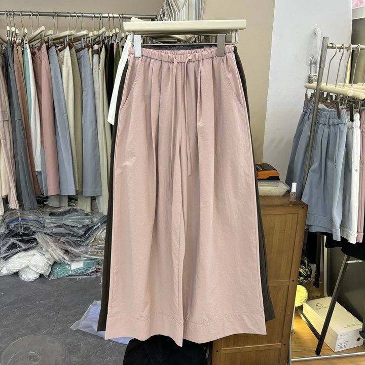 韩系松紧高腰抽绳休闲阔腿裤女2024夏季轻薄大裤腿宽松显瘦长裤子