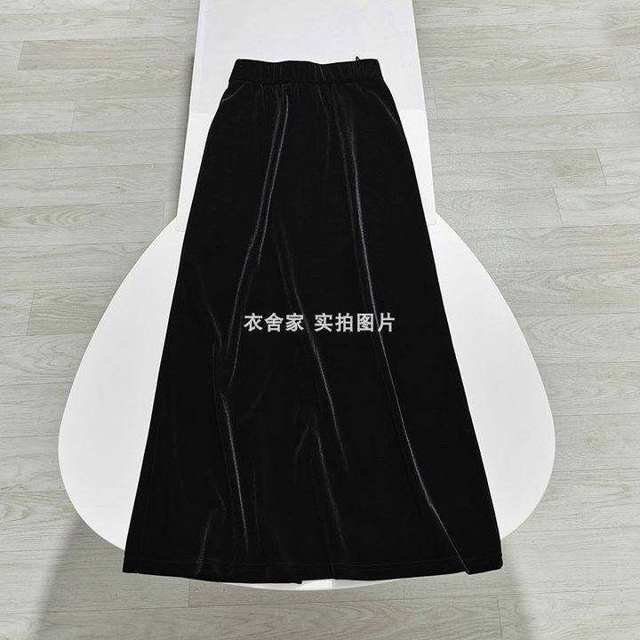 轻熟感 复古黑色高腰显瘦丝绒中长直筒裙女秋修身后开叉H型半身裙
