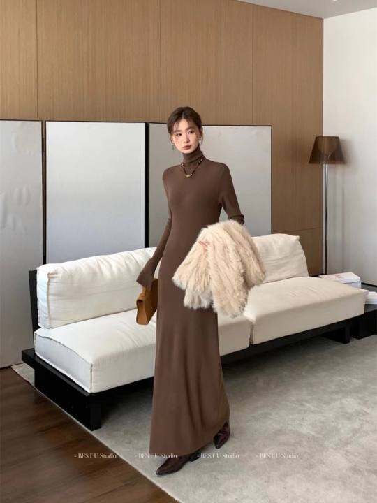 Best U高领极简针织连衣裙女秋冬新款高级感内搭修身显瘦气质长裙