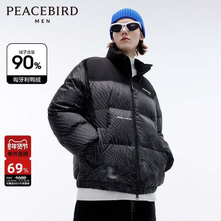 太平鸟男装 潮流羽绒外套立领上衣保暖冬季休闲拼接防寒羽绒服男