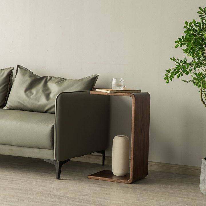 黑胡桃木原木定制现代极简客厅卧室多功能轻便沙发C型边几小茶几