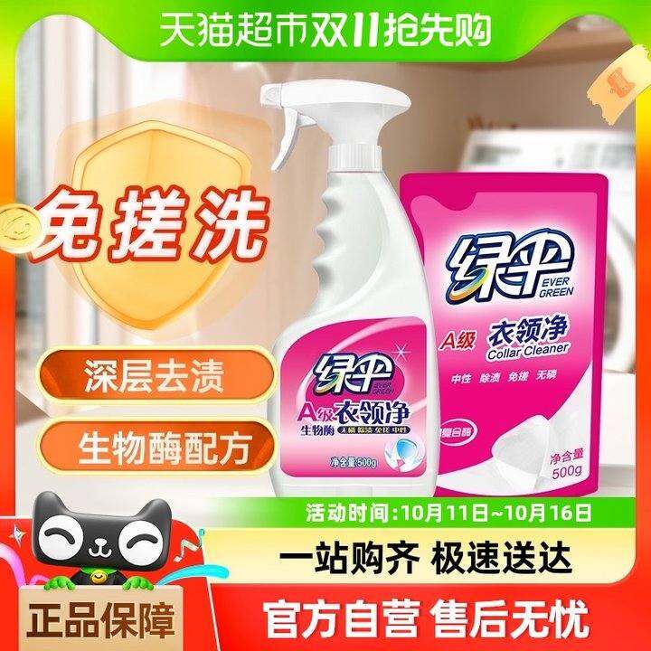包邮绿伞衣领净深层去污衣物除渍500g*1瓶+500g*1袋洁净家用洗白