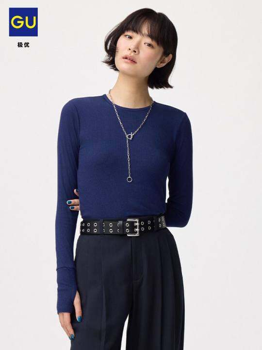GU极优女温暖罗纹圆领T恤吸汗发热长袖保暖内衣 25年冬新 358044