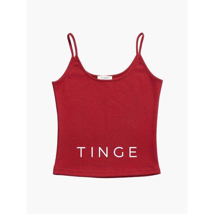 TINGE贴己红色弹力棉坑纹吊带背心女夏季薄复古清凉隐藏副乳紧身