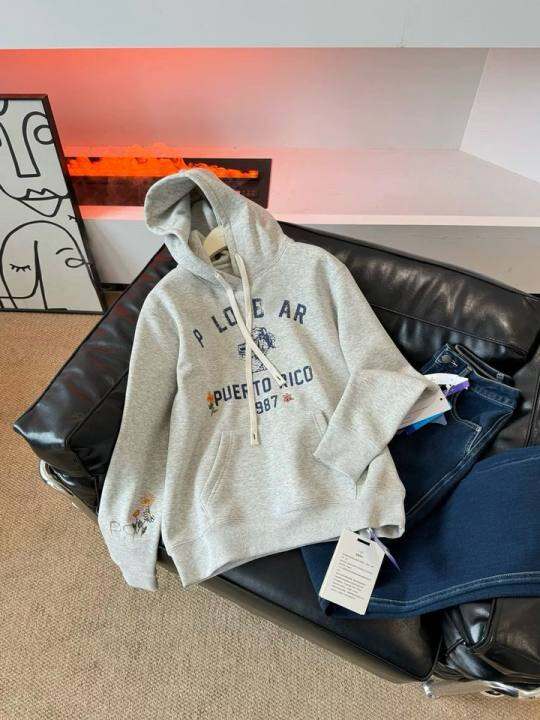 青岛代工!精致雪花熊加绒卫衣连帽英系小众印花加刺绣宽松百搭