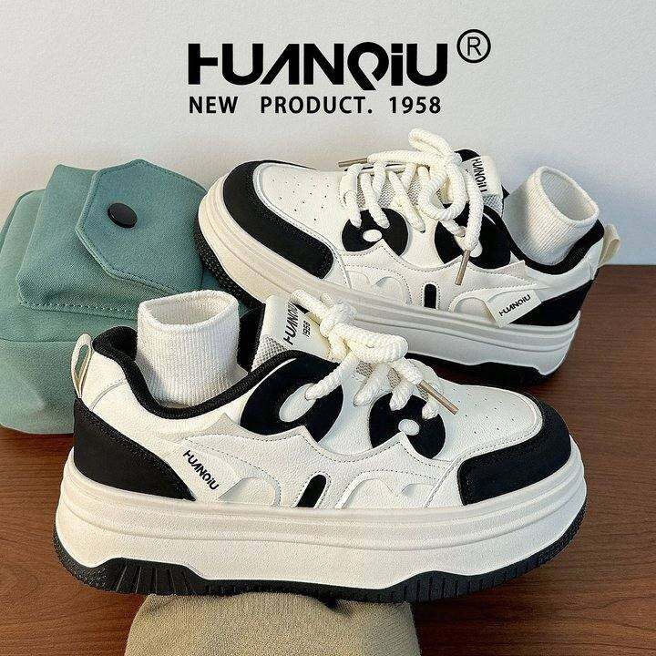 环球黑白熊猫鞋女春季2024新款复古港风chic鞋子小众厚底增高板鞋