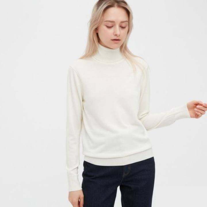 U+美利奴羊毛日单秋冬薄款简约高翻领女装针织衫 23303