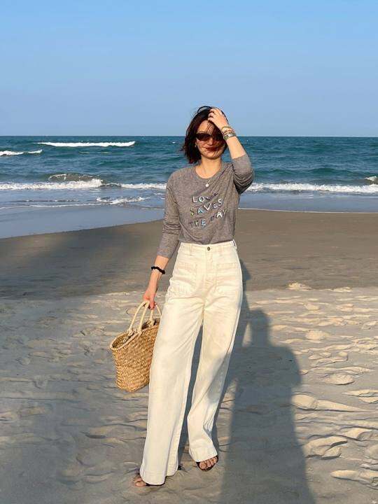 Damostudio早春新品 率性简约休闲百搭双口袋纯棉中腰阔腿牛仔裤