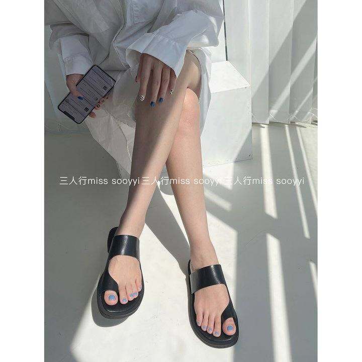 【三人行】别具一格|休闲风夹趾凉拖厚底外出穿拖鞋女度假凉鞋女