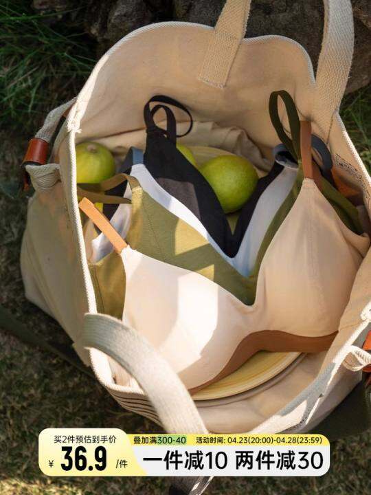 靴下物内衣女春夏薄款小胸法式Bralette三角杯棉文胸舒适撞色肩带