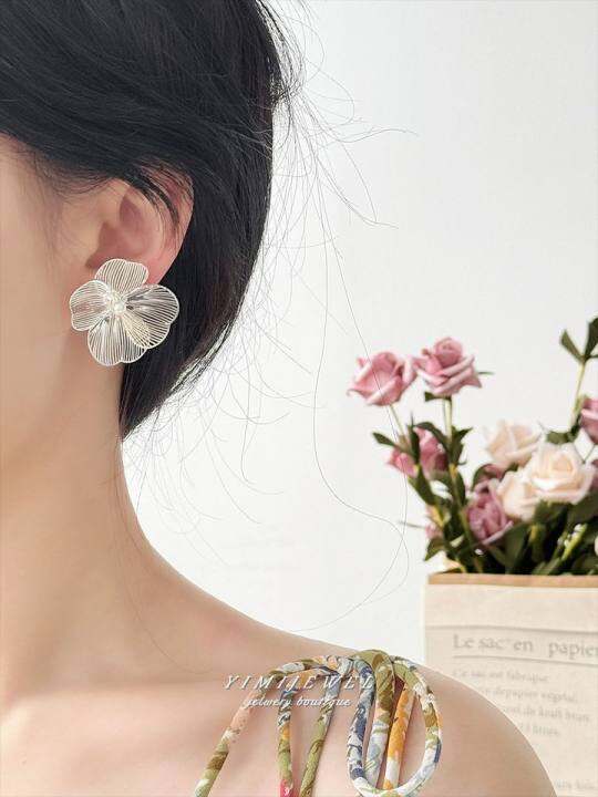 「肆意绽放」夸张银色大花朵耳夹无耳洞女轻奢高级感耳饰度假耳饰