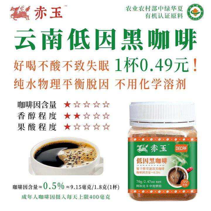 赤玉 云南低咖啡因速溶黑咖啡 咖啡因含量≈0.5% 瑞士水 不致失眠